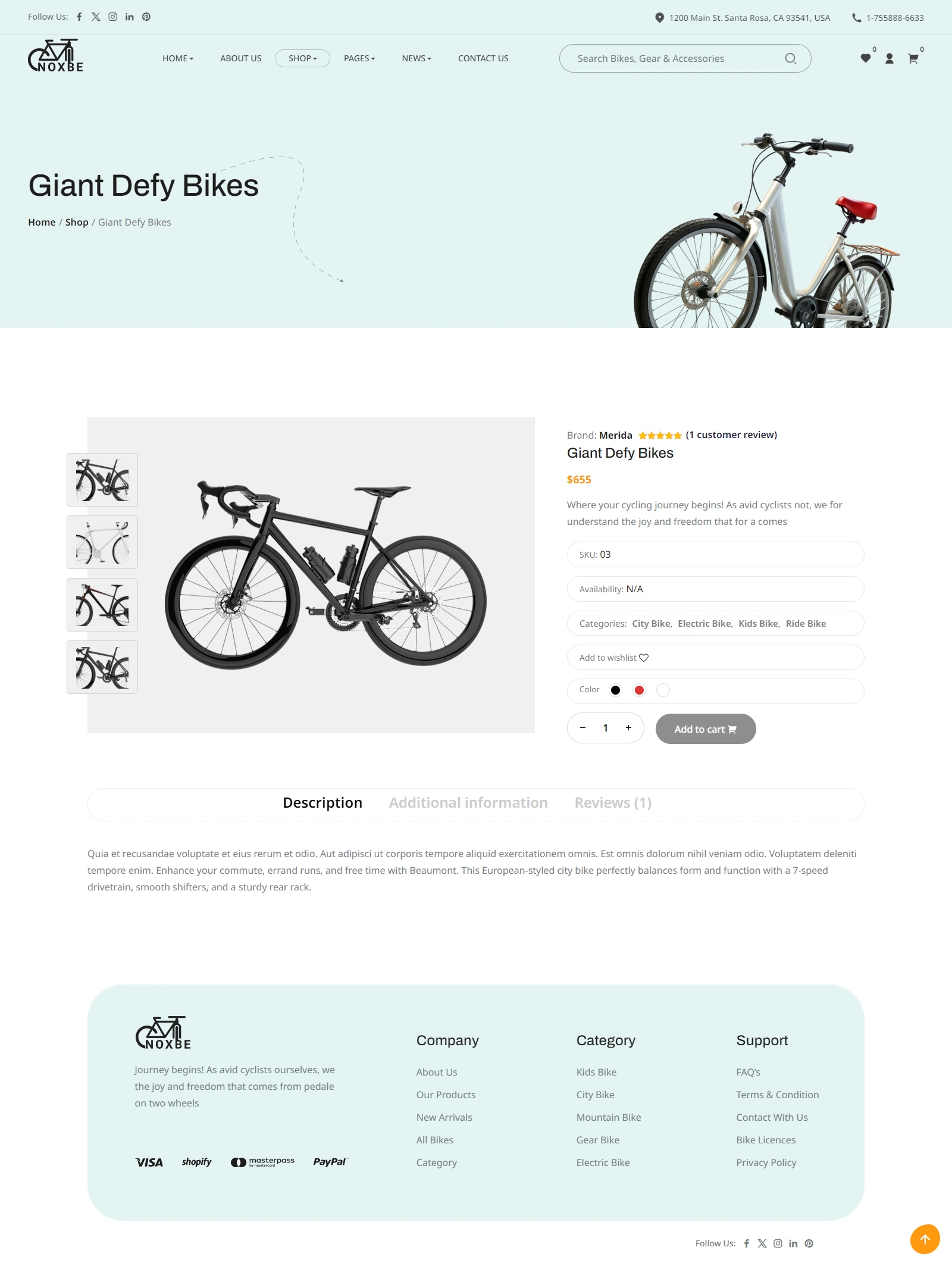 A dedicated cycling eCommerce platform catering to both casual riders and serious cyclists. Noxbe features a wide range of bikes, accessories, and gear, all presented with clear product details and customer reviews. The website's streamlined design ensures that cycling enthusiasts can find and purchase everything they need for their next adventure.