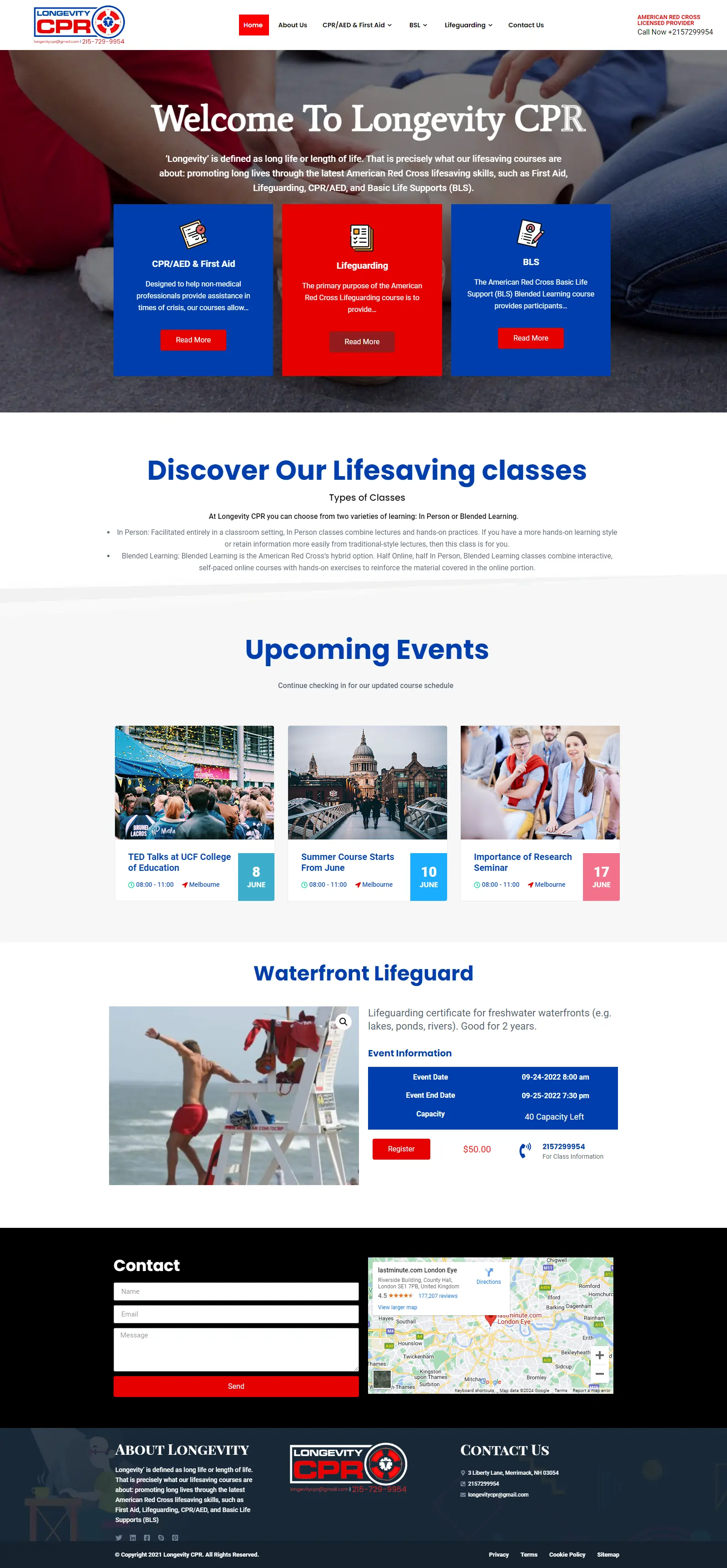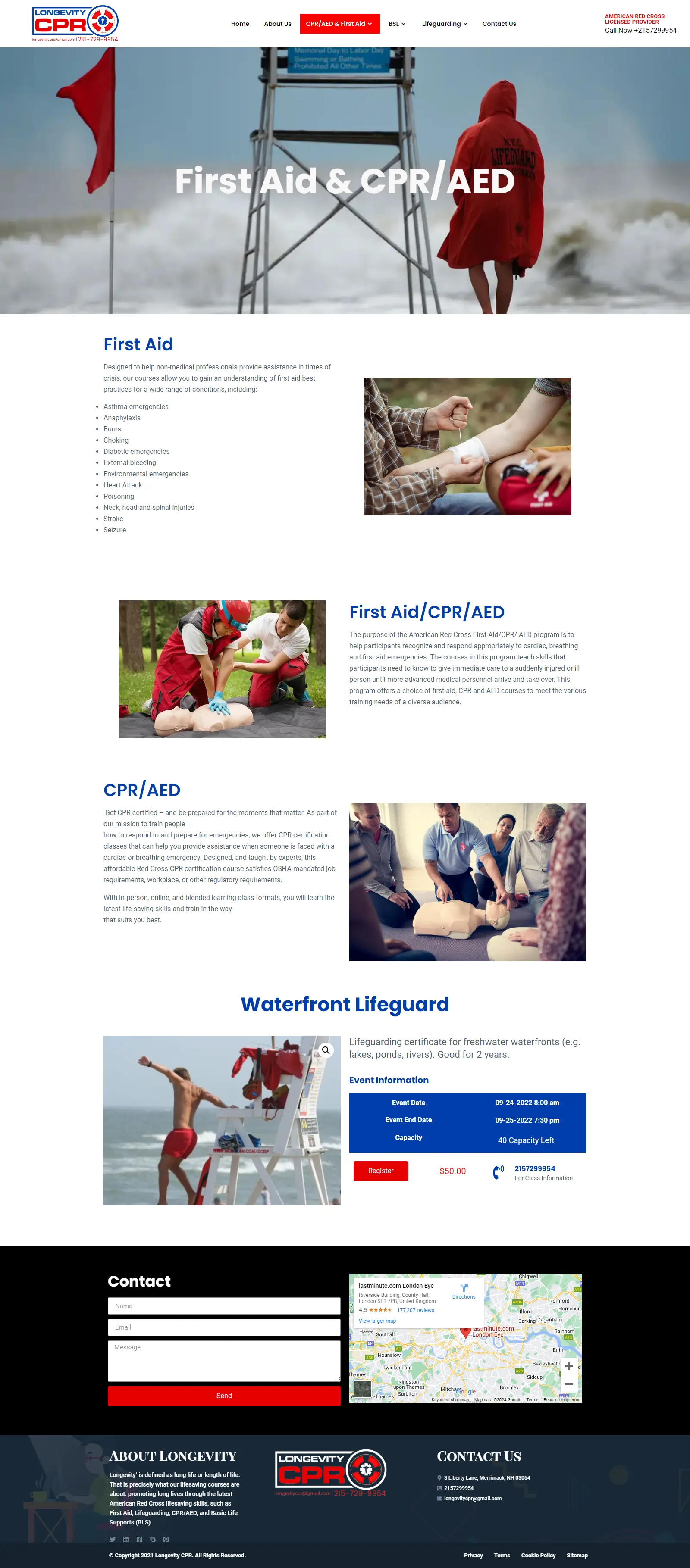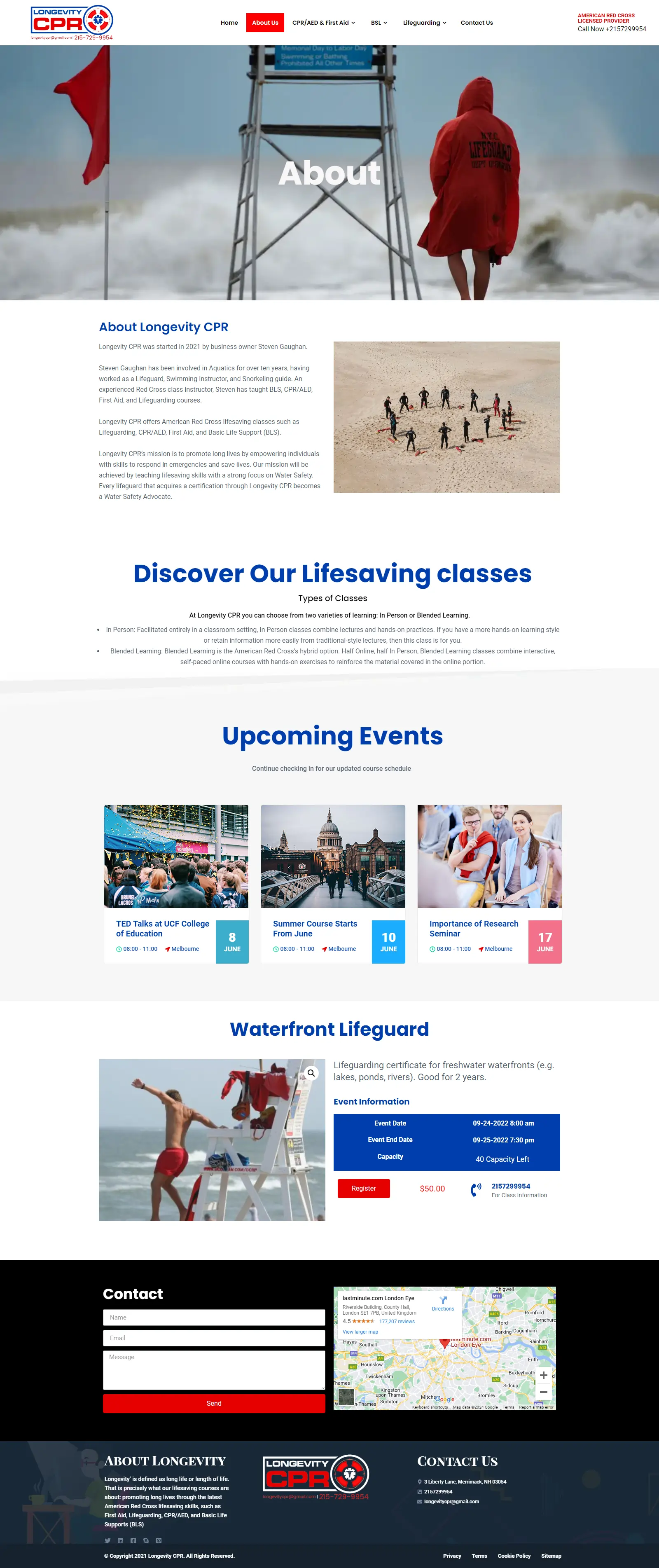 We built an engaging website for Longevity CPR, a non-profit focused on offering CPR and first aid training. The website was designed to help individuals find training programs, register for classes, and learn more about the importance of CPR.