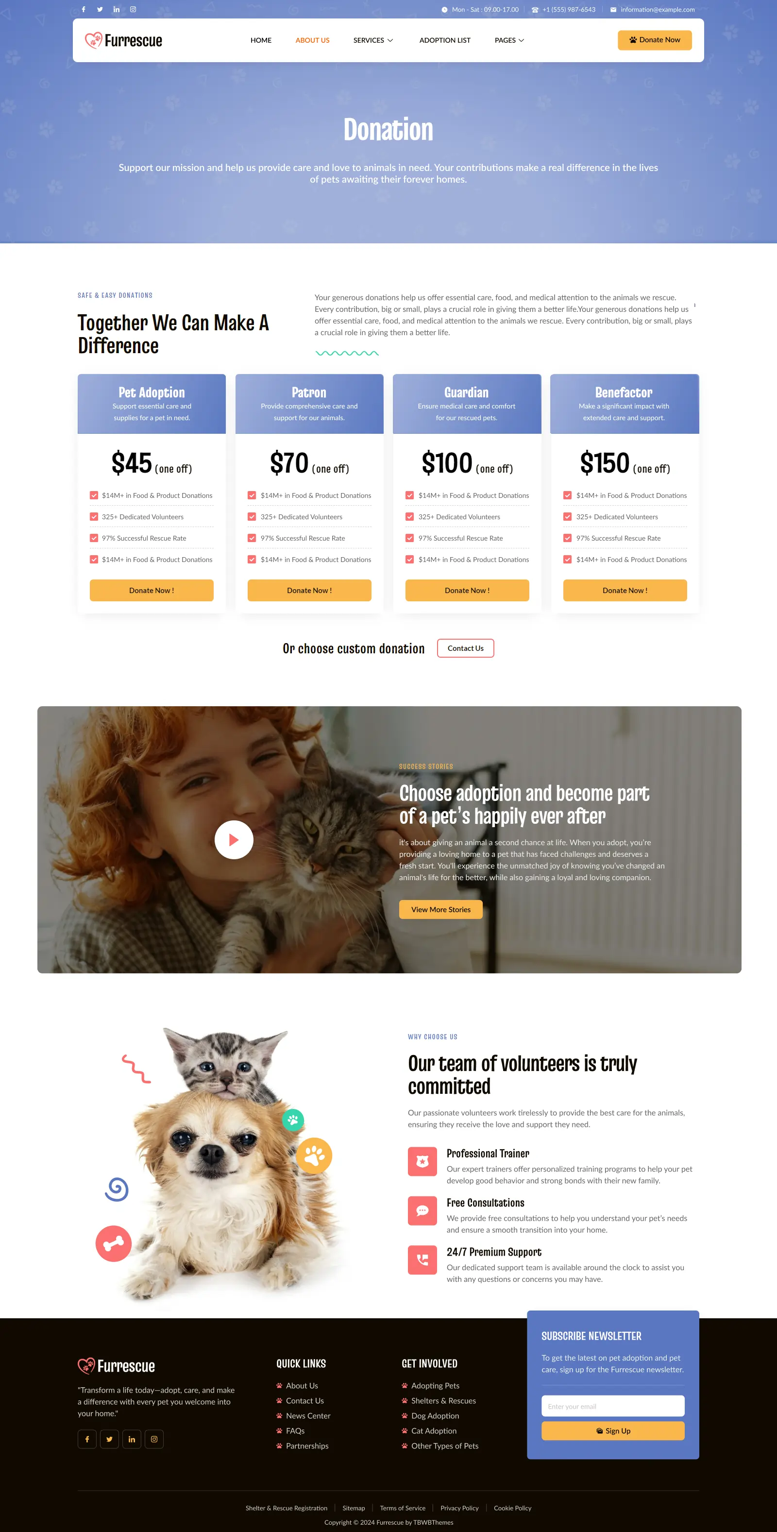 A compassionate pet rescue website dedicated to saving and rehoming animals in need. Furrescue offers information on adoptable pets, volunteer opportunities, and donation options. The website’s heartwarming design and easy navigation make it simple for visitors to get involved and help give pets a second chance at life.