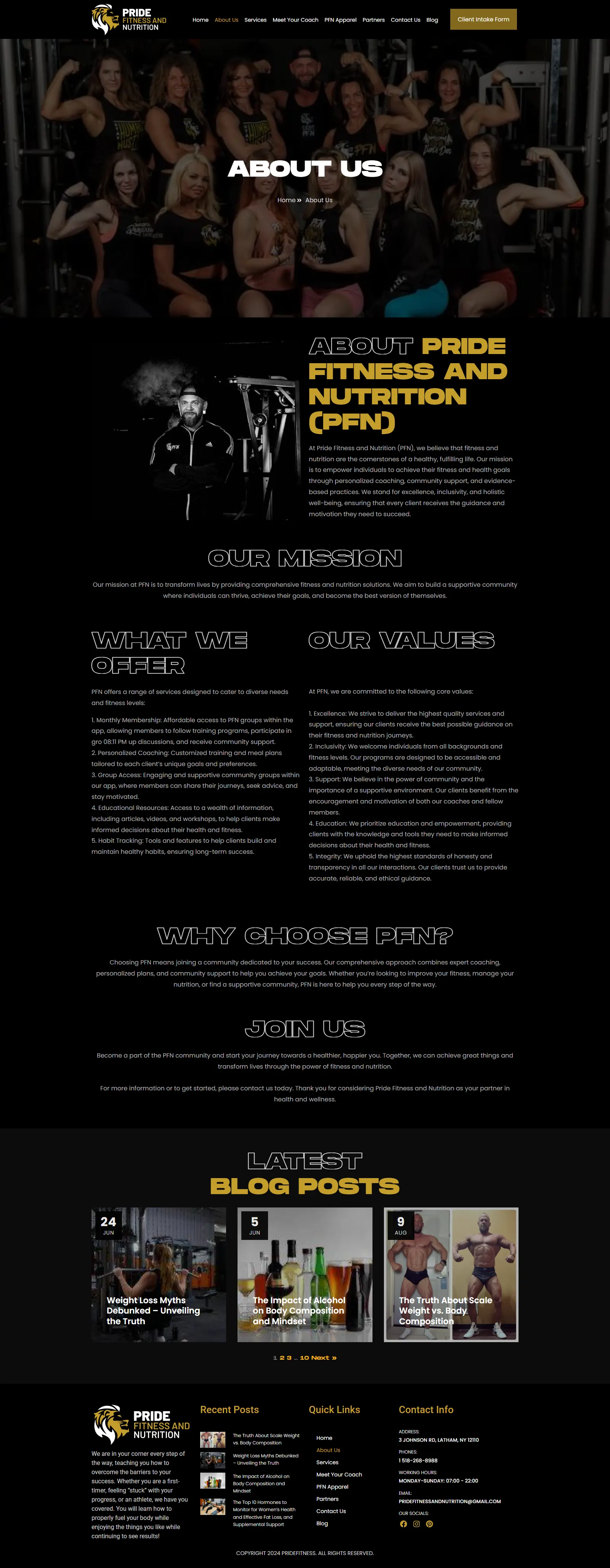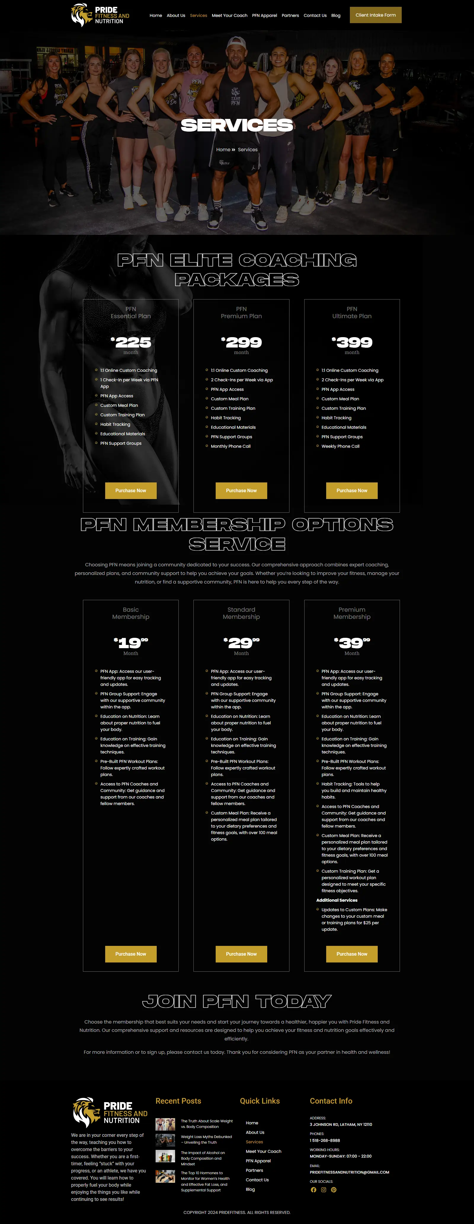 We created a dynamic website for Pride Fitness and Nutrition, designed to enhance their online presence and promote fitness coaching and nutritional advice. The project focused on building a platform that connects with clients and delivers personalized services.