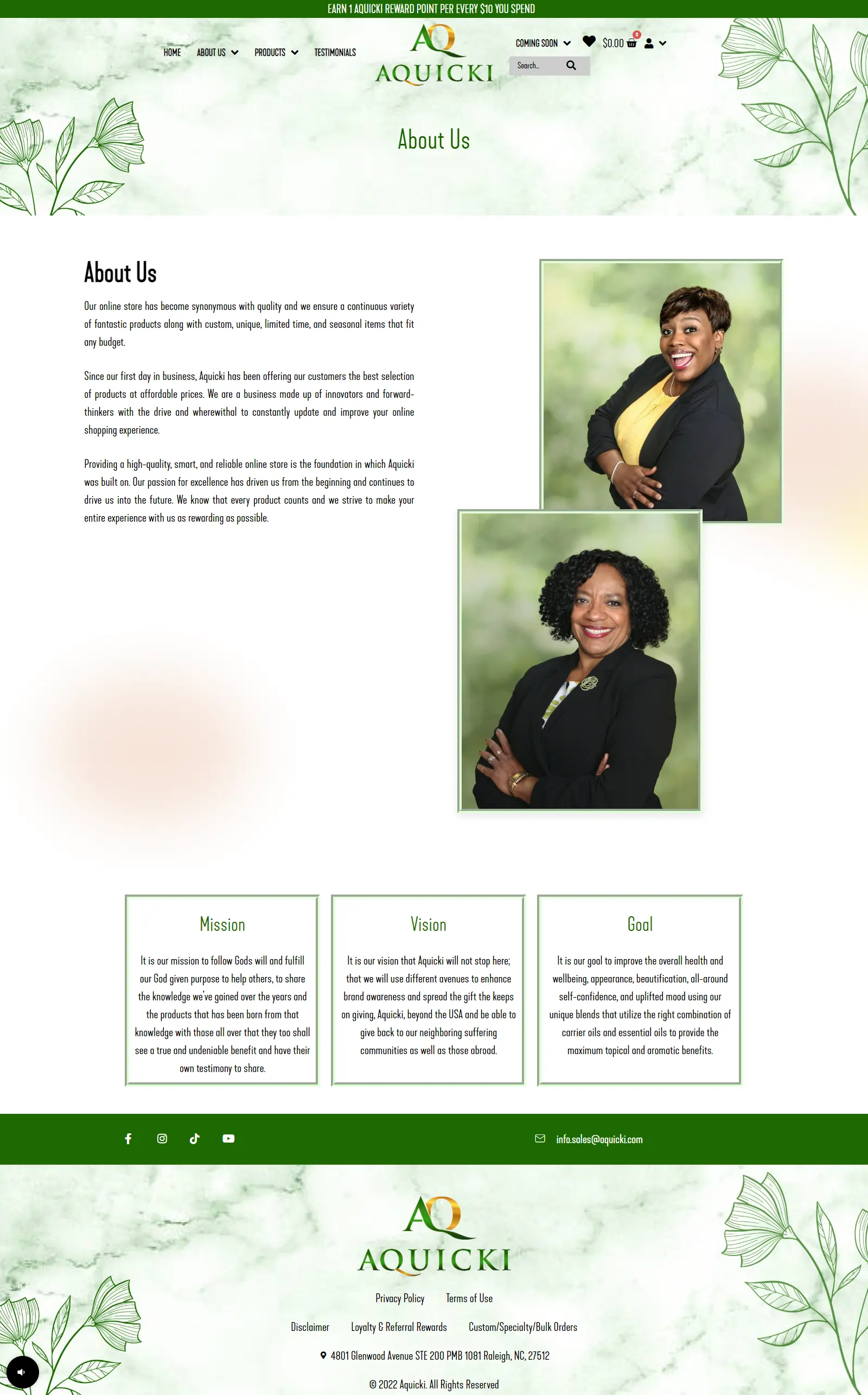 We developed a clean and elegant website for AQuicki Skincare to promote their skincare products and services. The project centered around building a visually appealing platform that enhances customer interaction and product discovery.