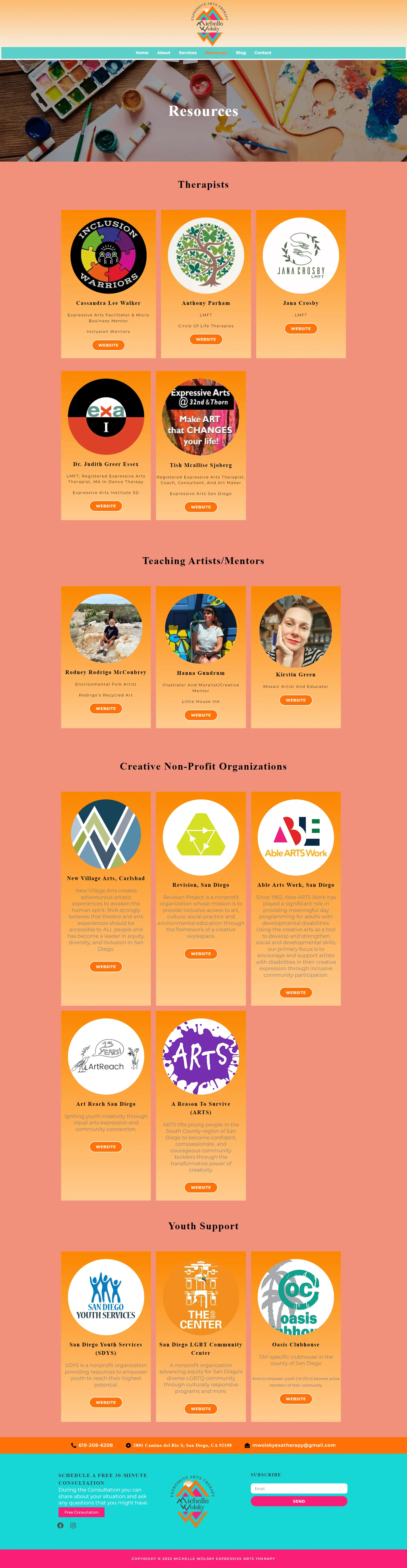 We built a vibrant and artistic website for Michelle Wolski, a creative therapy professional. The site was designed to reflect the therapeutic nature of art and attract clients interested in creative therapy services.