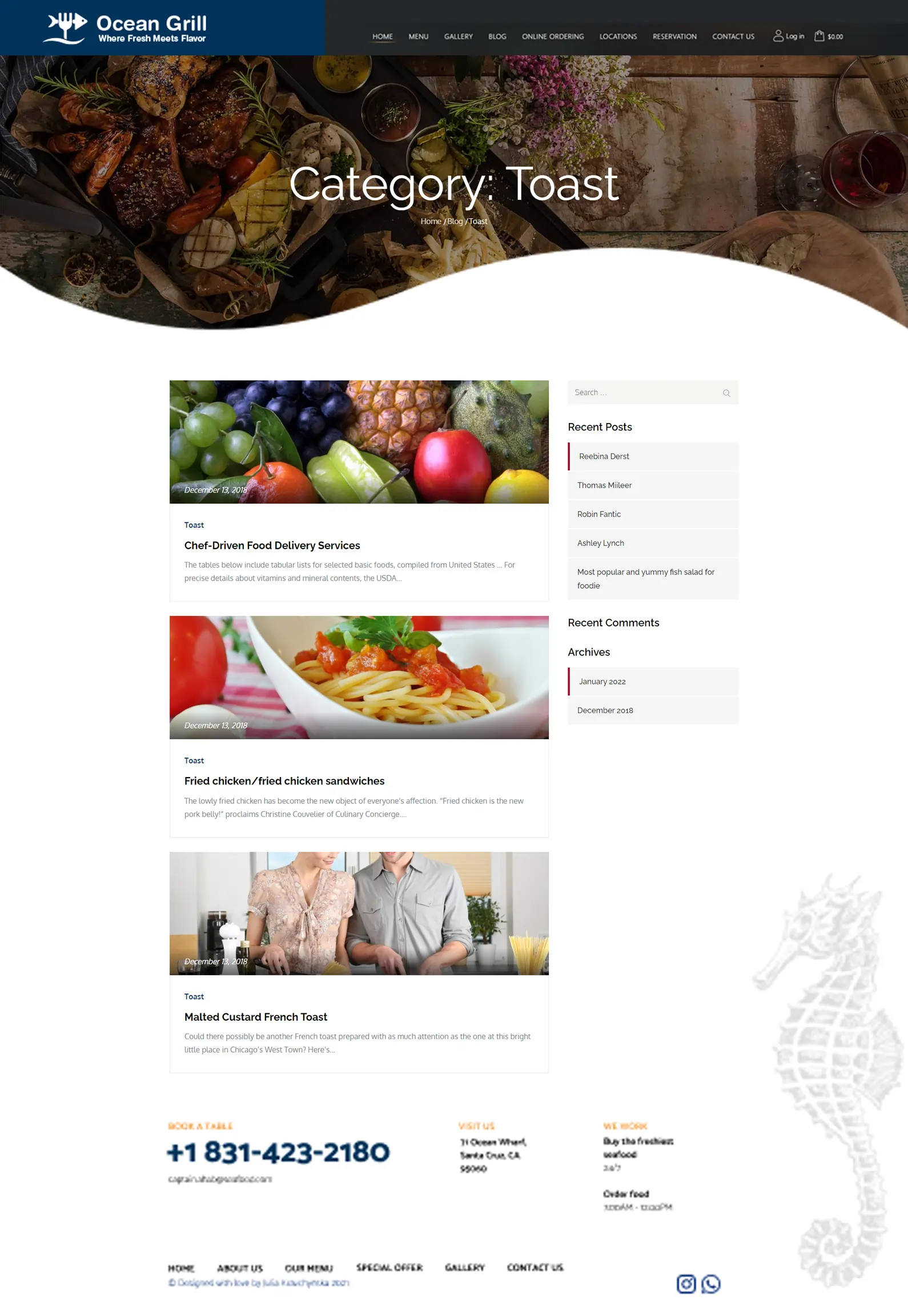 We developed a visually appealing and engaging website for Ocean Grill, focusing on showcasing their fresh seafood offerings and unique dining experience. The project aimed to attract more customers by enhancing their online presence and simplifying reservations.