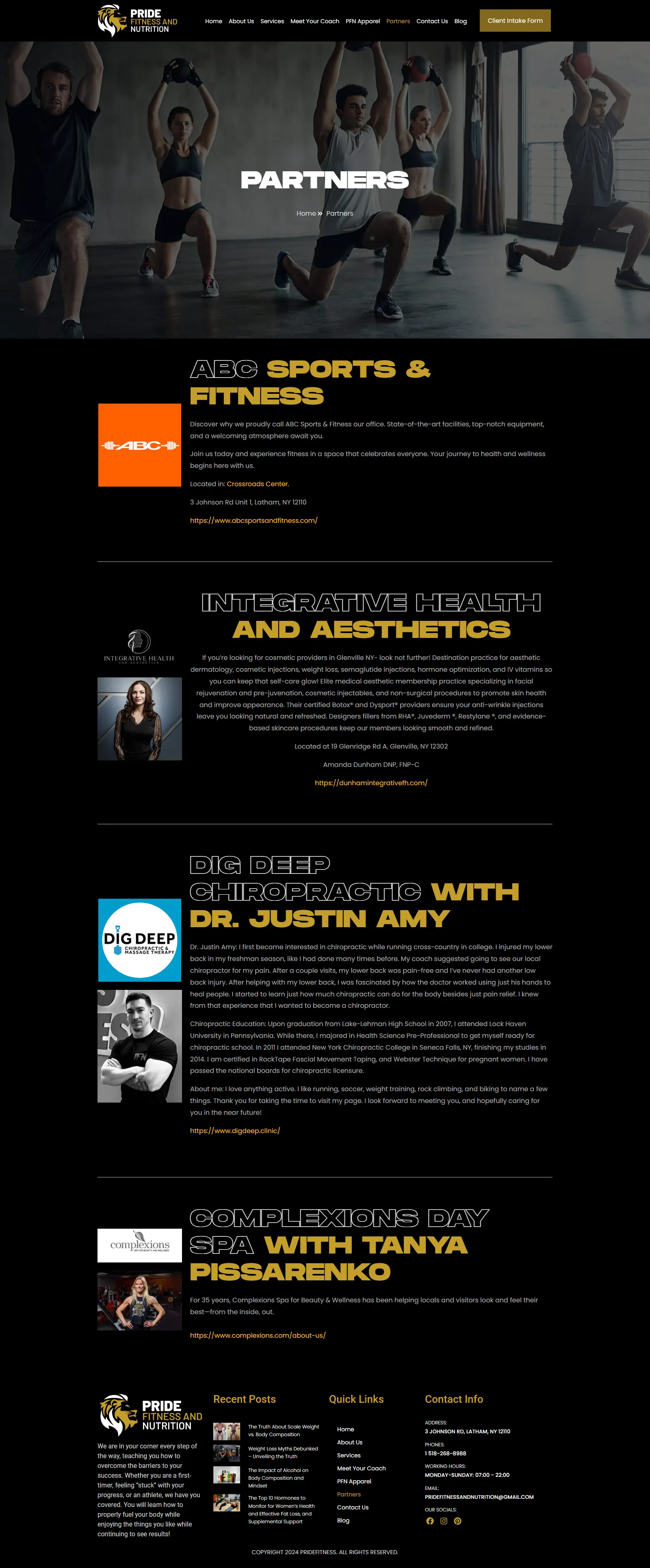 A comprehensive fitness and nutrition platform designed to support a healthy lifestyle. Pride Fitness and Nutrition offers personalized workout plans, nutritional advice, and a user-friendly interface. The website’s clean and motivating design ensures users can easily track their progress and achieve their fitness goals.
